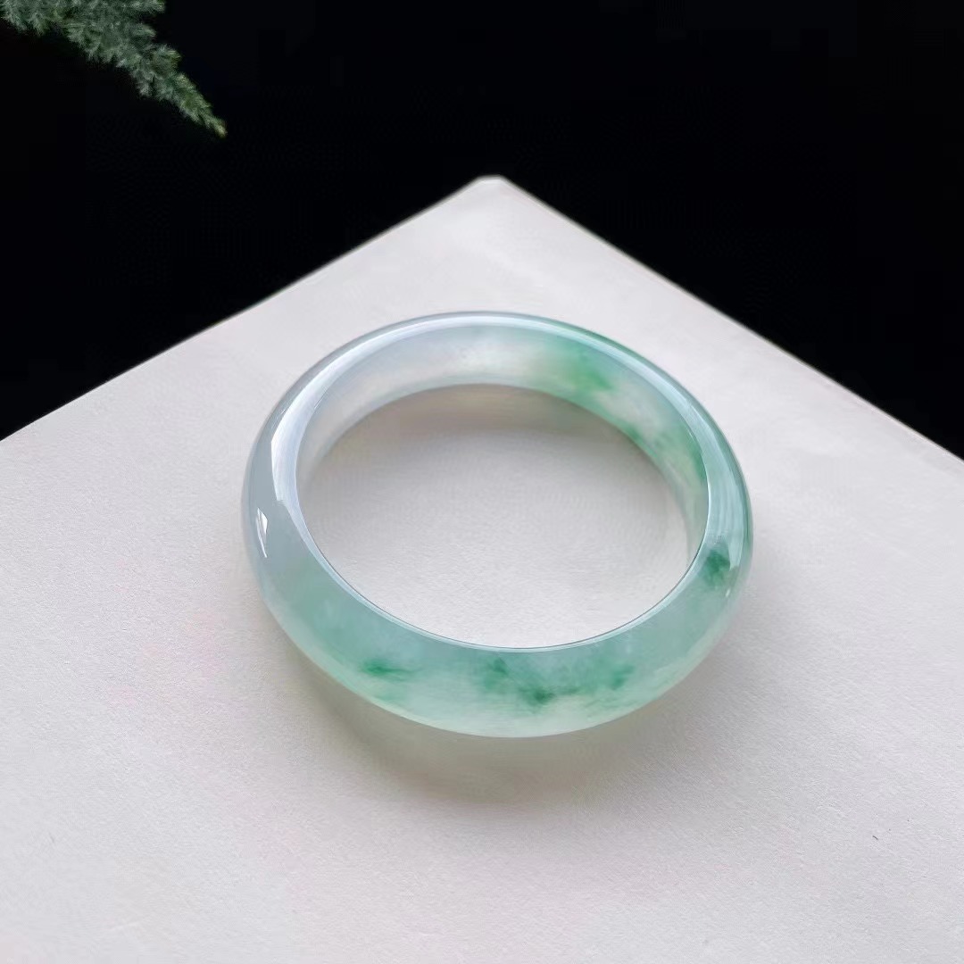 【描述】冰種飄花翡翠手鐲,大圈口,蘭花輕輕飄逸,晶瑩剔透 起熒光,種老水潤,無紋裂