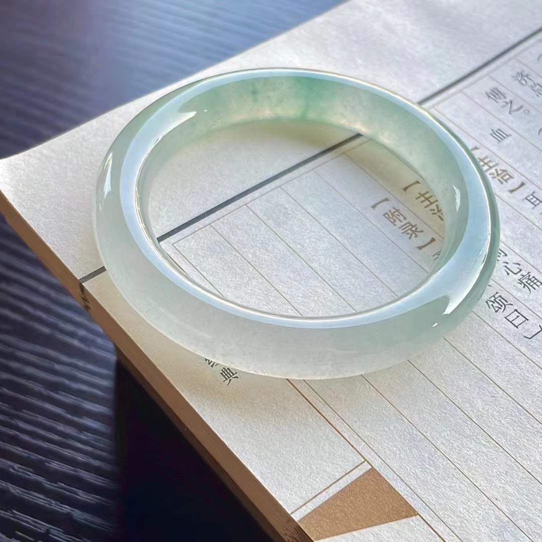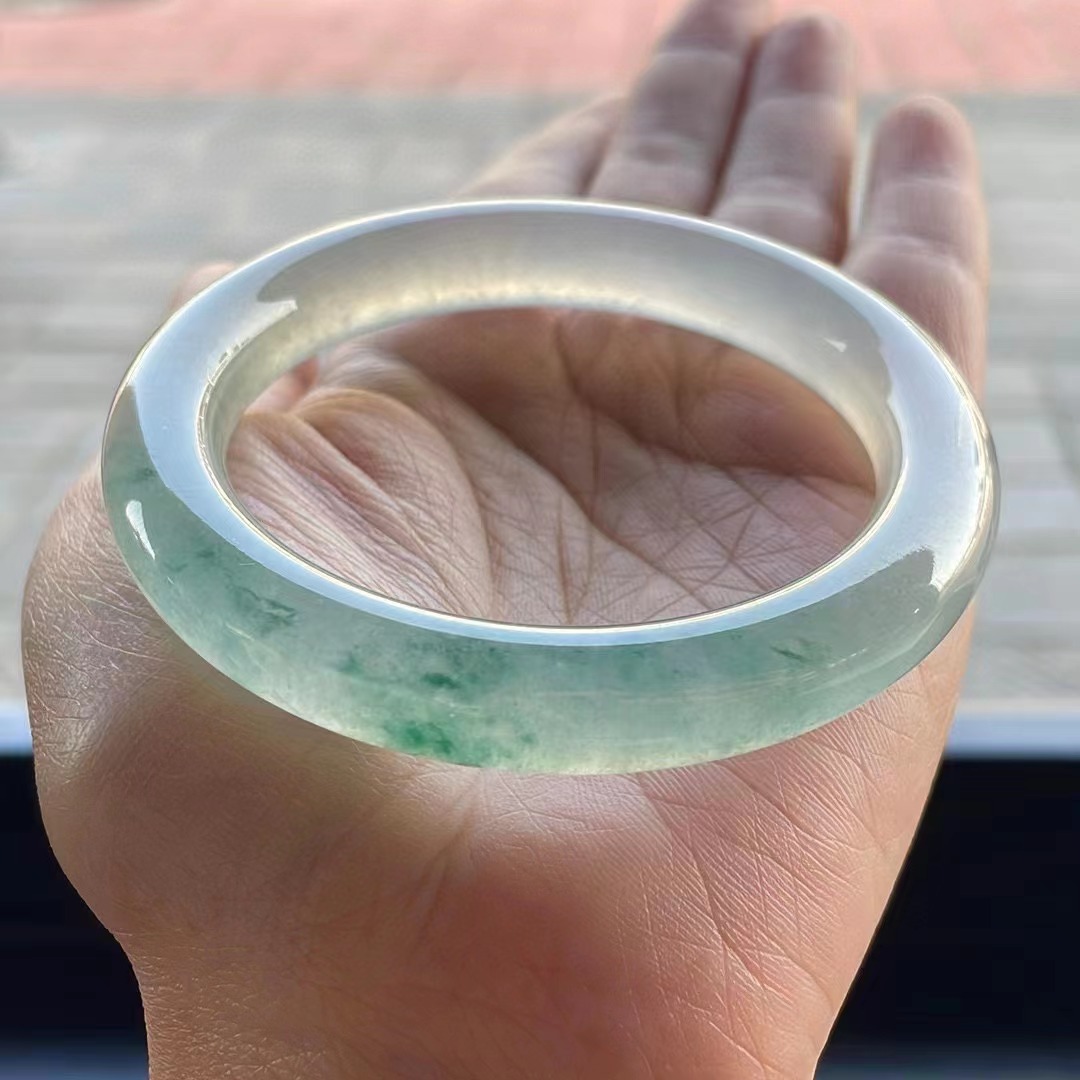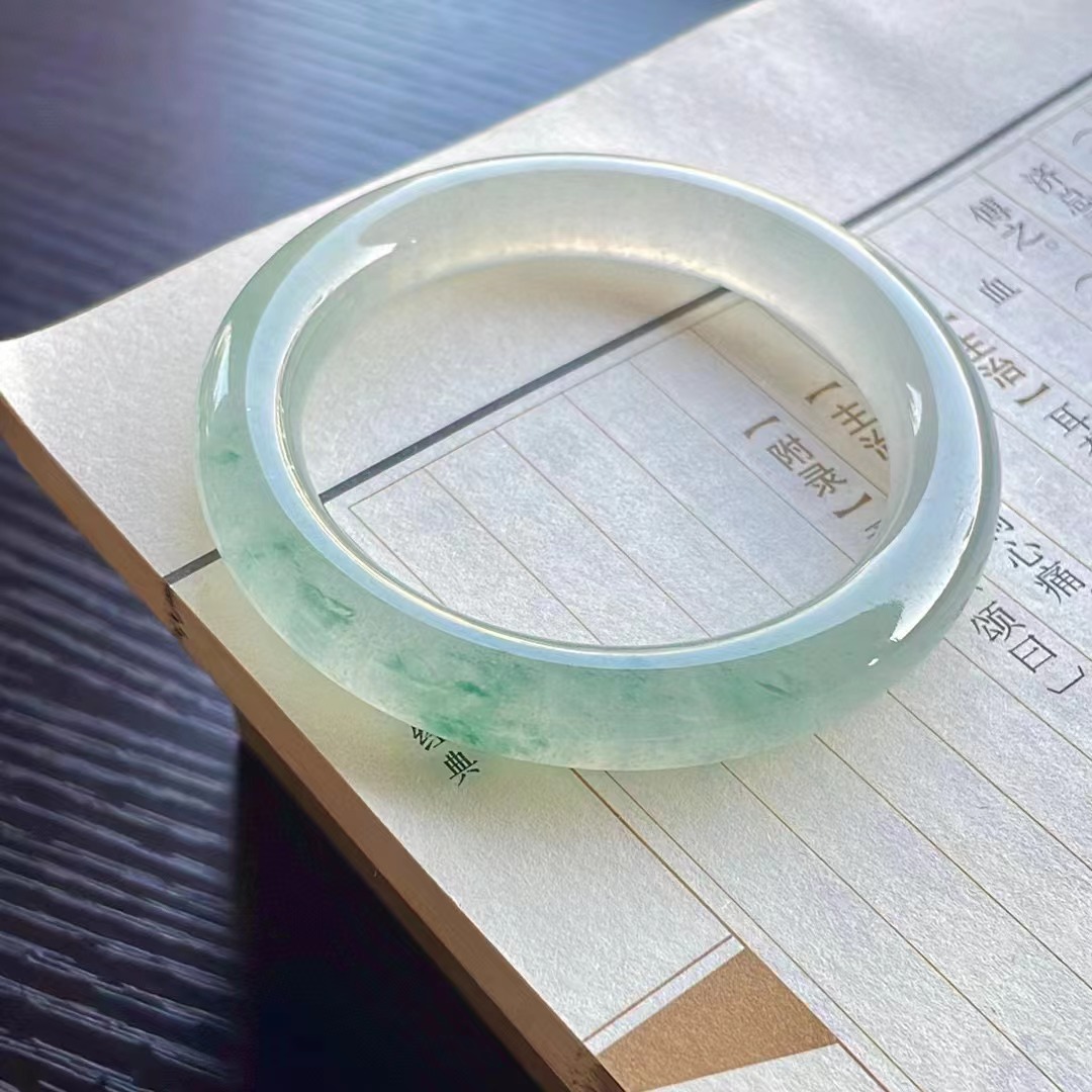 【描述】冰種飄花正圈手鐲,無紋裂